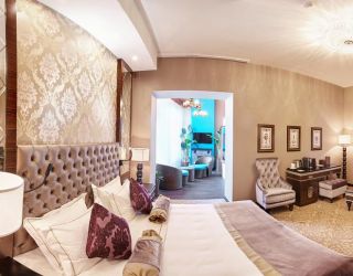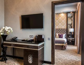 Номерной фонд разного уровня комфорта и вместимости располагается в 5-этажном здании. В комнатах выполнен дизайнерский ремонт, установлена удобная мебель для отдыха и хранения одежды. Есть кондиционер, мини-холодильник, сейф, телевизор со спутниковыми каналами, чайная станция, телефон. Санузел индивидуальный, с ванной или душем. Для комфорта гостей предоставляются полотенца, халаты, тапочки и туалетно-косметические принадлежности.