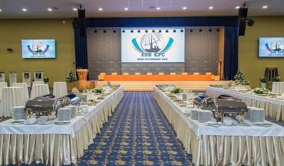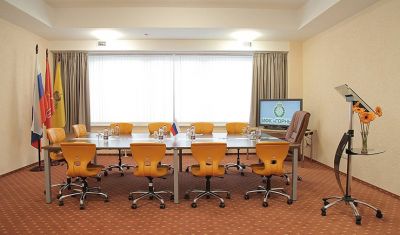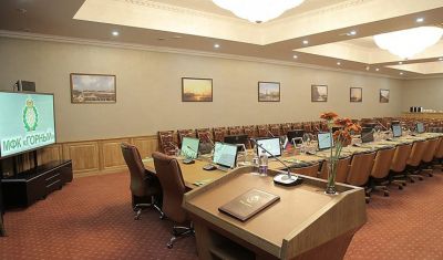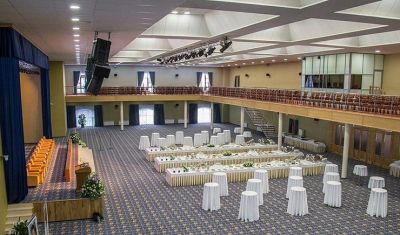 К услугам гостей Ресторан на 300 посадочных мест, отдельный VIP зал на 80 человек, Лобби-бар вместимостью до 100 человек, организация кофе-брейков, обедов, фуршетов с возможностью адаптации меню под нужды заказчика, а также современный двухуровневый фитнес-зал.