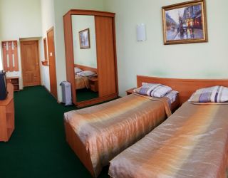 Комплекс стоит в черте города и включает в себя одно 3-этажное кирпичное здание и 4 благоустроенных коттеджа. Жилой фонд обеспечен всем необходимым для комфортного проживания: удобной мебелью, телевизором, санузлом с душем. Часть номеров имеют удобства на блок. Номера повышенной комфортности дополнительно оснащены холодильником и чайником. Коттеджи оборудованы мини-кухнями (чайник, микроволновая печь, холодильник, посуда).