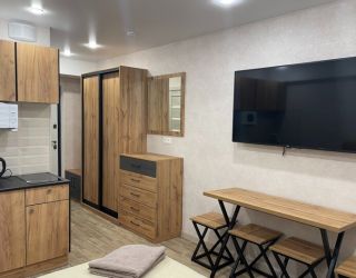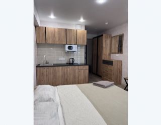 Апартаменты располагаются в 4-этажном корпусе с лифтом. Интерьер комнат выполнен в светлых, бежевых тонах. В апартаментах обеспечено все для беззаботного отдыха: интернет, телевизор, стиральная машина, кондиционер, удобная кровать с ортопедическим матрасом и уютный мини-диван. Прекрасный вид на море открывается из окон. Также оборудована кухонная зона, где есть все, чтобы самостоятельно приготовить еду: плита, холодильник, электрический чайник, микроволновая печь и набор посуды.