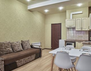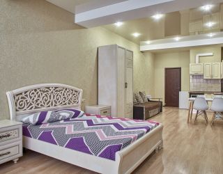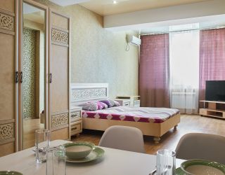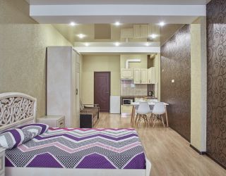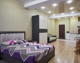 Современное многоэтажное здание, в котором разместились Апартаменты, возвышается на берегу Артбухты. Гостей ожидают светлые просторные номера, оснащенные мини-кухней и индивидуальным санузлом с душевой кабиной. В каждой комнате имеется большая комфортабельная кровать с ортопедическим матрасом, диван, кондиционер, плазменный телевизор и другая бытовая техника.