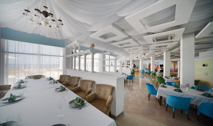 Пятизвёздочный санаторно-курортный комплекс «Aquamarine Resort & SPA» расположен в 10 км от центра Севастополя, в Парке Победы. Благодаря высокому классу сервиса, «Аквамарин» считается фешенебельным курортом региона. Его охотно выбирают для совмещения бизнеса с отдыхом и используют для деловых встреч. На базе комплекса имеются современный бизнес-центр и 6 конференц-залов, соответствующие европейским стандартам. Девятиэтажное здание комплекса находится на охраняемой закрытой территории. Приятный интерьер, современная мебель и бытовая техника в каждом номере. Отдых можно совмещать с оздоровительными процедурами. В санаторно-курортном комплексе постоянно функционирует пресноводный крытый бассейн. Работает комплекс открытых подогреваемых бассейнов с горками и аттракционами. На территории есть собственный аквапарк «Зурбаган». В банном комплексе – римская и русская бани, финская сауна, хамам. Спа-центр работает по оригинальным специализированным программам. Кроме этого, о здоровье и внешности гостей заботятся косметологический и массажный кабинеты, парикмахерская, салон красоты. Задействовано направление эстетической косметологии. Спортсмены и любители имеют возможность посещать тренажёрный зал, теннисный корт, площадки для игры в мини-футбол, волейбол и баскетбол под открытым небом. Есть оборудование для настольного тенниса и пляжного волейбола. Активно работает прокат спортивного инвентаря. В числе развлечений для гостей санаторно-курортного комплекса – кинопоказы и концерты, караоке и диско-бар, бильярд, настольные игры, богатая экскурсионная программа, дневная и вечерняя анимации для зрителей разного возраста. Питание постояльцев отличается разнообразным меню: в комплексе – 4 основных ресторана, бары на пляже и у бассейна, фито-бар в спа-центре, лобби-бар. Услуги для детей в «Aquamarine Resort & SPA» отличаются большим разнообразием. Под присмотром воспитателя функционирует игровая комната. Анимационные мероприятия для детей основаны на развивающих играх, мастер-классах, квестах. Для юных гостей комплекса устраивают дискотеки. На базе собственного аквапарка при отеле проводятся занятия по аквааэробике, игры и соревнования на воде. У отеля на расстоянии 50 м есть благоустроенный пляж. При нём работает бар. В аренду сдаются катамараны, гидроциклы, снаряжение для виндсерфинга, водные лыжи.