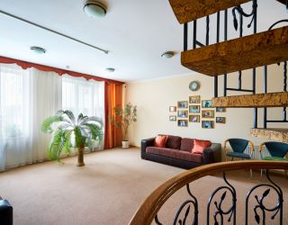 К услугам гостей отеля – кафе, финская сауна, находящиеся на нижнем этаже. На территории имеется отлично оборудованная игровая площадка для детей.