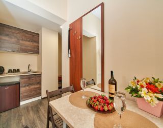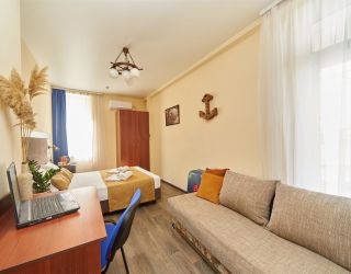 Мини-отель расположен на одной из главных магистралей Гагаринского района — улице Вакуленчука. Небольшой жилой фонд мини-отеля включает в себя всего 8 номеров. В каждом есть собственный санузел с набором косметических принадлежностей, плазменный телевизор, холодильник, кондиционер, а в семейных номерах предусмотрена мини-кухня.