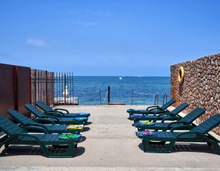 В нескольких шагах от жилых корпусов оборудован собственный выход к морю и к оснащенному пляжу мальтийского типа.