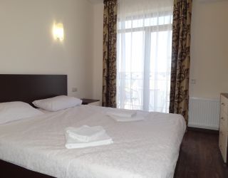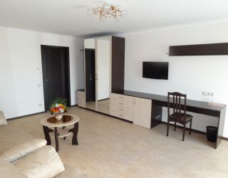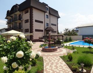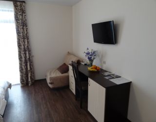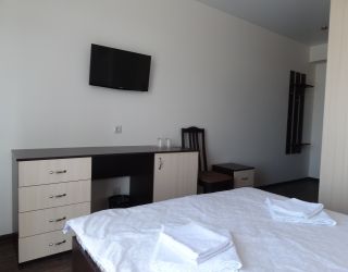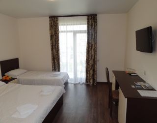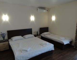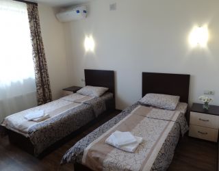 Корпус отеля находится на закрытой благоустроенной территории в 1300 кв.м. Номерной фонд небольшой и рассчитан на размещение до шестидесяти отдыхающих. Комфортабельные номера категории Стандарт, Семейный и Делюкс оснащены кондиционерами, сейфами, ЖК-телевизорами, холодильниками, в ряде комнат имеются меблированные балконы.