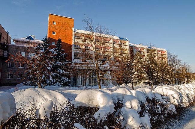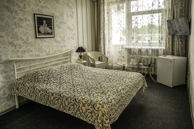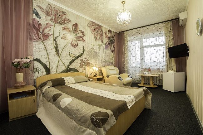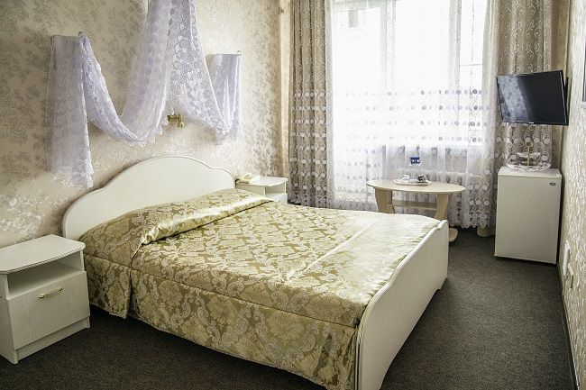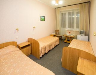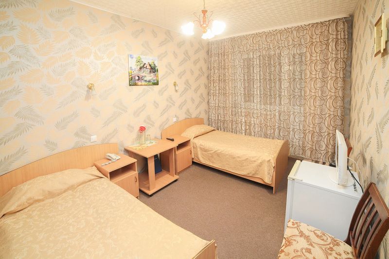 Санаторный комплекс представлен единым зданием, корпуса которого (два спальных 5-этажных корпуса, лечебный блок и столовая) объединены теплым переходом. Вместительный номерной фонд представлен несколькими категориями, оформленными в разных стилевых решениях. Каждый номер обеспечен всем необходимым. Есть душ/ванна, санузел, предметы гигиены, ТВ, телефон, холодильник, фен, сейф. Комплектация номеров класса люкс и выше дополнена кондиционерами, халатами и тапочками.