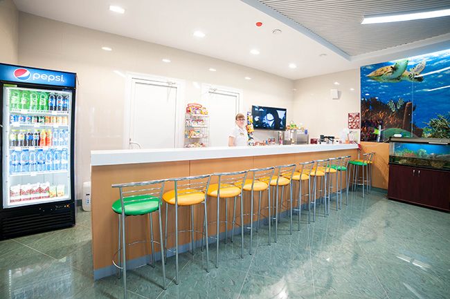 Для детей оснащена детская комната с воспитателем. На свежем воздухе оборудована песочница и игровой городок с горками. В столовой предоставляются детские стульчики и специальное детское питание.