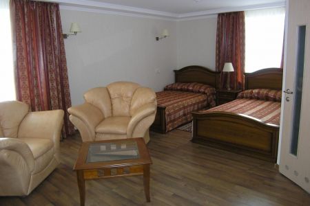 Поездом до ж/д вокзала г. Симферополь, далее на автобусе №41 (49, 60, 64, 65, 96) или троллейбусе №4 (6) до ост. «Турбаза Таврия», далее пройти пешком 380 м до гостиницы.
