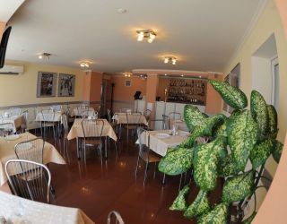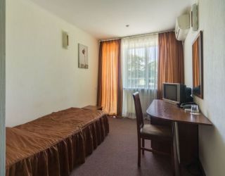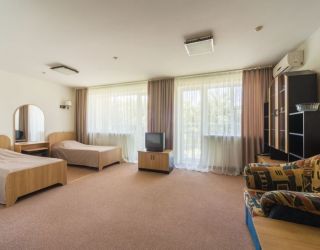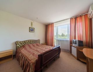 Пятиэтажный корпус отеля, оснащенный лифтом, включает 85 номеров Стандарт и Комфорт. В номерах есть санузел с ванной, удобный мебельный гарнитур, кондиционер, телевизор и холодильник, в большинстве комнат предусмотрены балконы. При отеле работает кафе, где отдыхающие могут заказать себе комплексное питание.