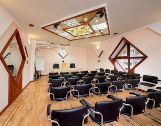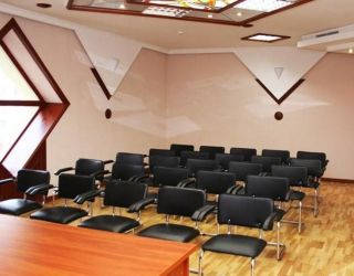 Просторный зал площадью 95 кв.м. расположен на четвертом этаже отеля в непосредственной близости к нескольким номерам, в которых могут удобно расположиться спикеры, либо организаторы мероприятия.