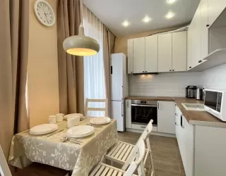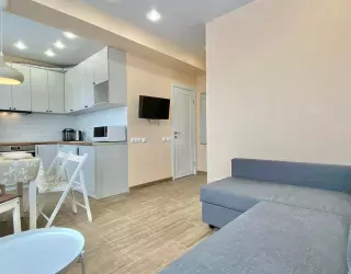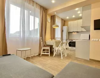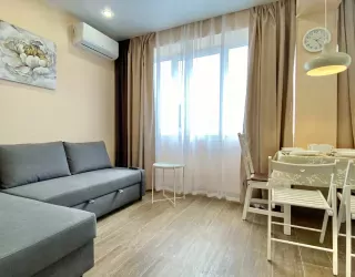 Современные апартаменты имеют полное оснащение: функциональная кухня, стиральная машина, wi-fi, кондиционер, комфортная мебель, гардероб, отдельные спальные зоны и просторный санузел.