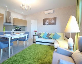 Современные апартаменты имеют полное оснащение. В каждом апартаменте есть функциональная кухня, стиральная машина, wi-fi, кондиционер, комфортная мебель, гардероб, отдельные спальные зоны, просторный санузел. Из панорамных окон и открытых балконов открывается красивый вид на море и горы.