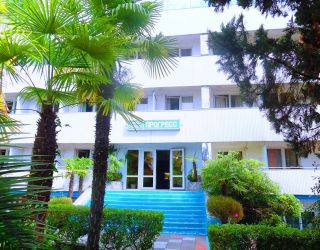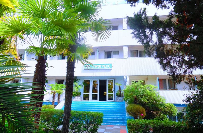 База отдыха «ПРОГРЕСС» расположена в центре курортного поселка Якорная щель на берегу моря в 100 метрах прямой видимости.