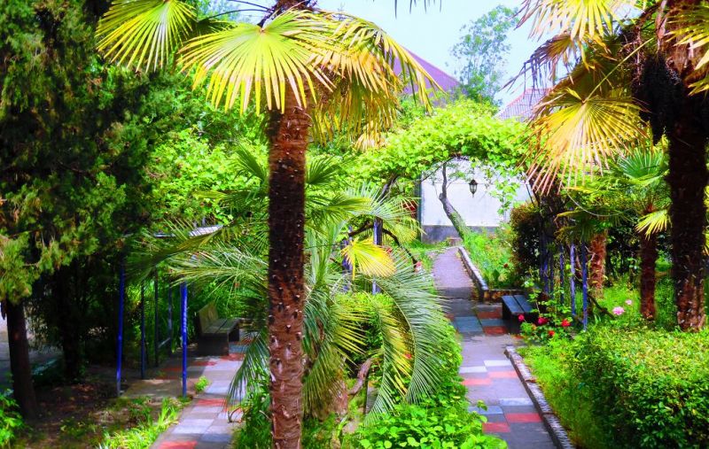 Территория базы очень уютная и компактная, утопающая в субтропической растительности.