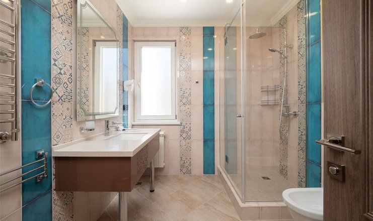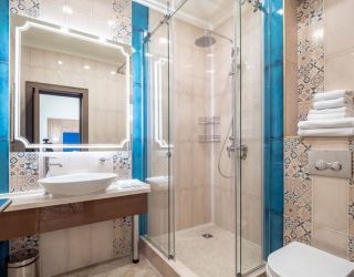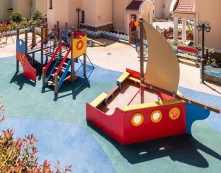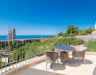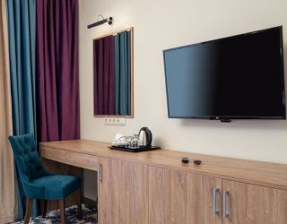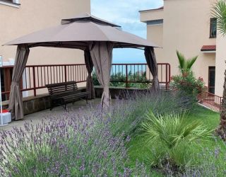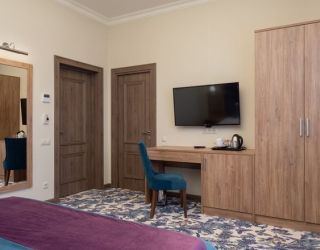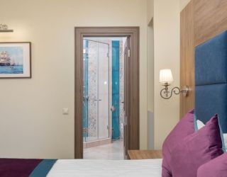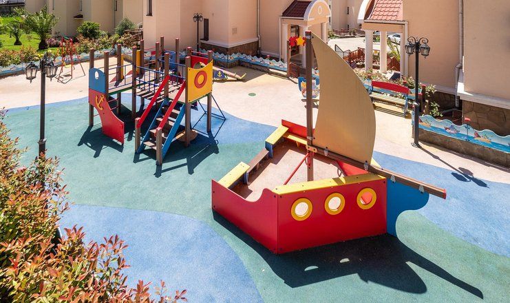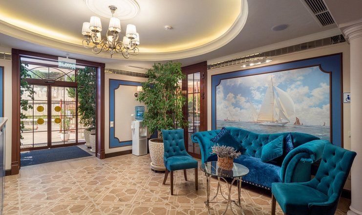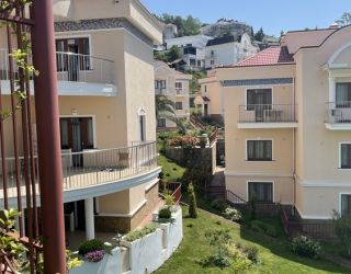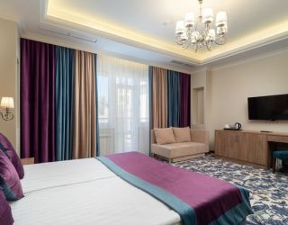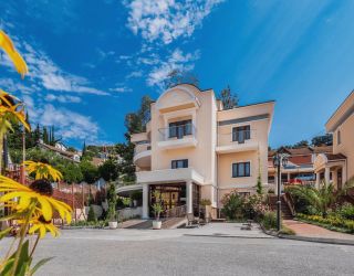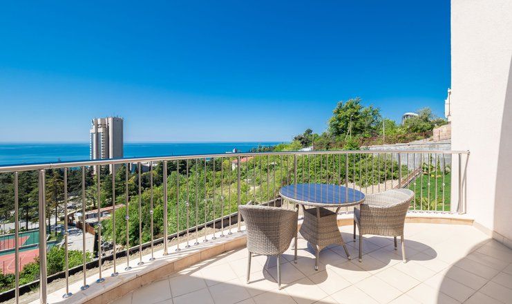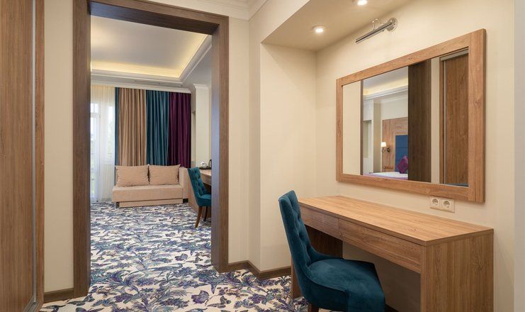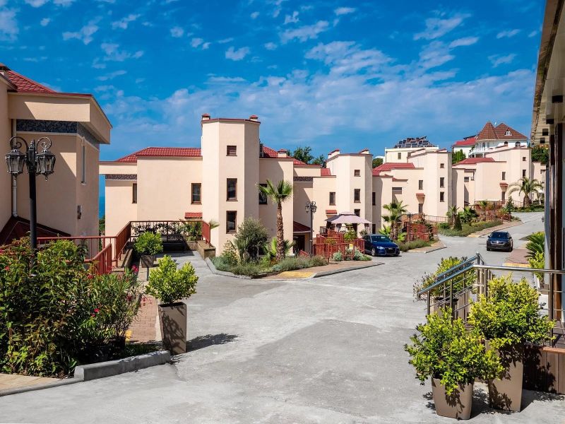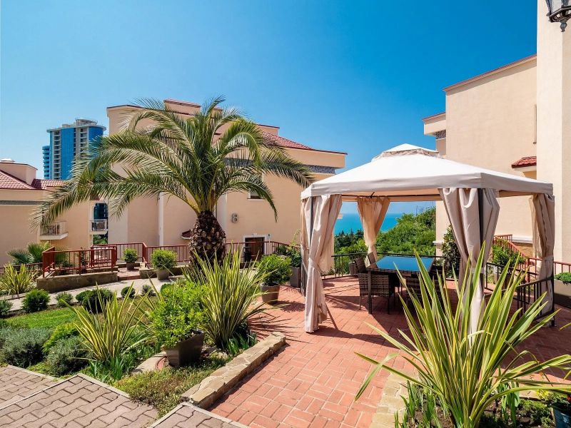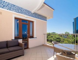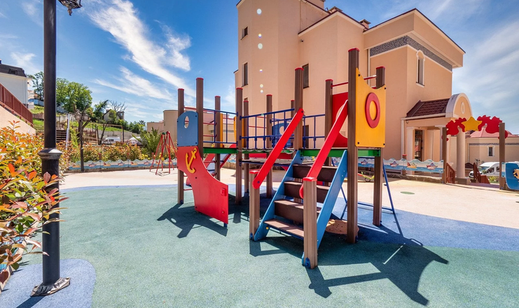Санаторий с собственной озелененной территорией 1,8 га, где произрастает более 100 видов растений располагает оборудованными мебелью беседками для отдыха. В восьми 3-этажных коттеджах 65 новых номеров с видом на море. В комнатах выполнен современный дизайнерский ремонт, установлена эргономичная мебель для отдыха, есть рабочая зона, места для хранения одежды и личных вещей, мини-холодильник, сейф, кондиционер, телевизор с плоским экраном, телефон, чайная станция, сушилка для белья. Санузел индивидуальный, с душевой кабиной, полотенцами, туалетными принадлежностями и феном. В номерах Джуниор сюит просторные балконы с видом на море и мебелью.
