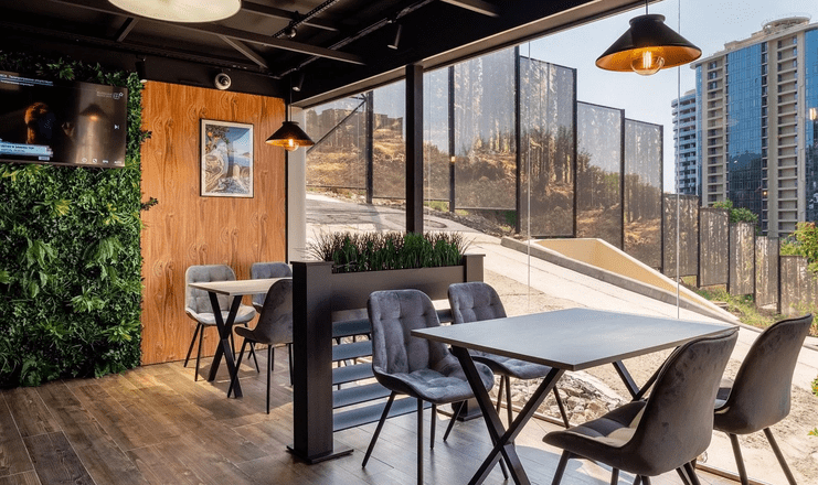 Питание в по системе «Шведский стол» в кафе с уютным залом и летней террасой. Интернет WI-FI работает на территории комплекса. 4 раза в день осуществляется трансфер на оборудованный пляж «Бора-Бора». Для малышей оборудованная детская площадка и детская комната. Бесплатная парковка на закрытой территории по предварительному заказу.
