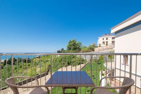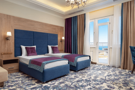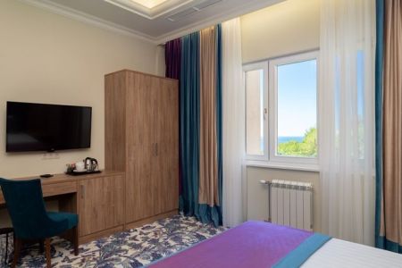 Самолетом до аэропорта Адлер (г. Сочи), далее на автобусе №105а,105с до остановки «Санаторий Приморье», далее 800 м до санатория.