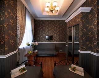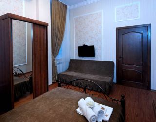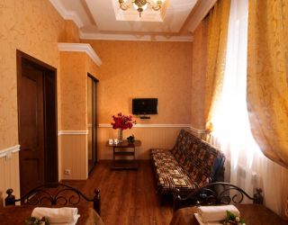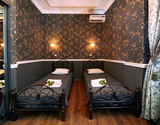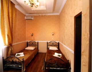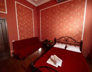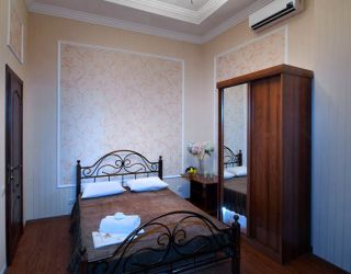 Двухэтажный корпус гостевого дома расположен на узкой тихой улочке в 850 метрах от морского побережья. Гостям предлагаются двухместные номера с удобствами. В комнатах классический интерьер, выдержанный в темных благородных оттенках, везде есть кондиционер, плазменный телевизор и небольшой холодильник.