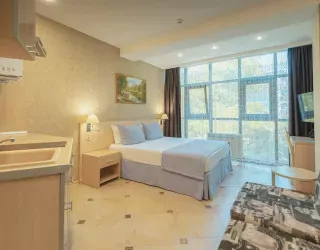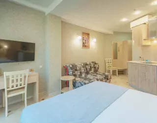 Апарт-отель располагается на 4 и 5 этаже, для удобства гостей работает лифт. Просторные апартаменты оборудованы как полноценные квартиры, есть санузел с душем, в комнатах имеется кондиционер, ЖК-телевизор и чайный набор посуды, в некоторых номерах предусмотрены балконы.