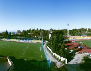 На поезде до ж/д вокзала Сочи, далее на автобусе №1 или маршрутке №38, 5 (в сторону Адлера) до остановки «Стадион».