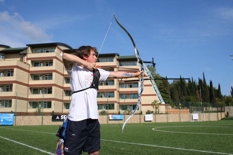 На самолете до аэропорта Адлер, далее на маршрутке № 105,106 до остановки «Стадион».