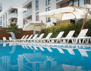На закрытой территории для всех гостей апарт-отеля расположены 2 открытых бассейна с подогревом 30-32 °C., 2 безопасные детские площадки, открытая спортивная площадка и стол для пинг-понга, автопарковка. Гостям доступна ежедневная уборка комплекса, услуги прачечной и индивидуальная сеть Wi-Fi.
