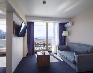 В гранд-отеле «Жемчужина» насчитывается более 886 номеров разной площади и уровня, способных одновременно принять почти 2 тысячи постояльцев. Все, без исключения, номера отеля прекрасно меблированы и оснащены кондиционерами, сейфовыми ячейками, плазменными ТВ и WI-FI, каждый имеет балкон с высокими панорамными окнами. С них открываются чудесные виды на живописную картину Кавказских гор и морских пейзажей.