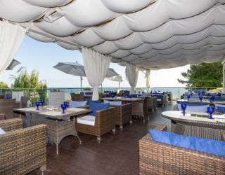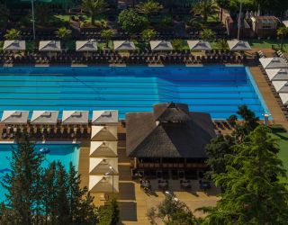 Для юных гостей отеля кроме льгот при заселении, есть великолепный бассейн с подогреваемой морской водой, площадью в 400 кв.м., игровые площадки и комнаты, батут и масса аттракционов на морском пляже, регулярные детские анимации и шоу, прокат детских колясок и кроваток – манеж.