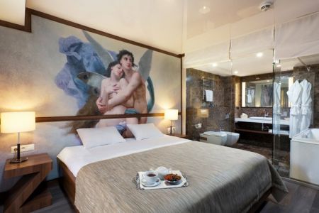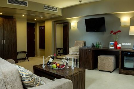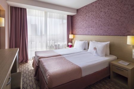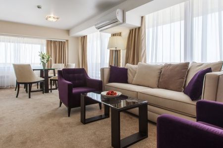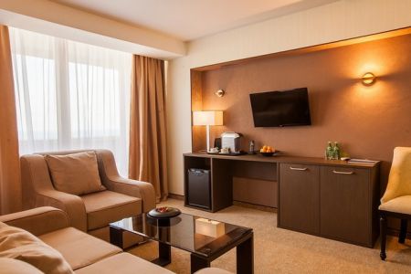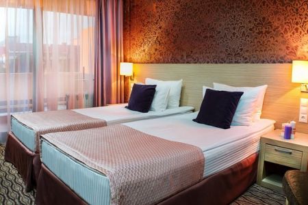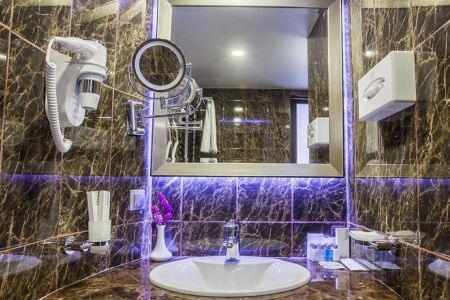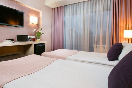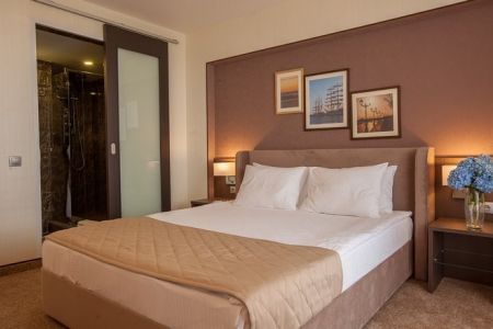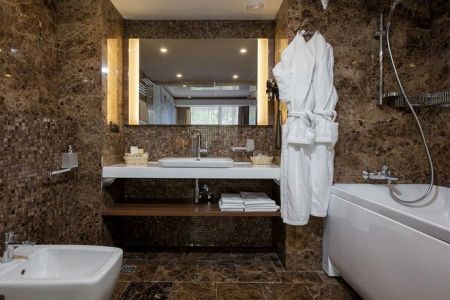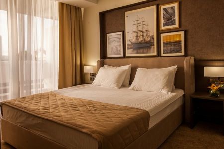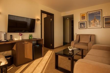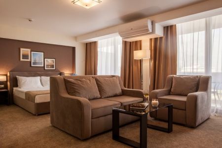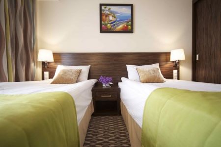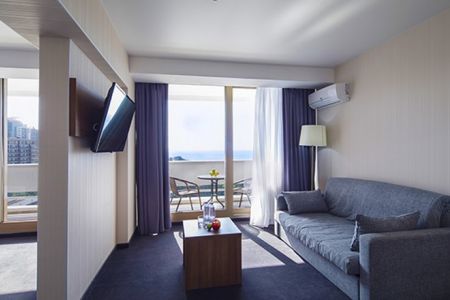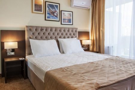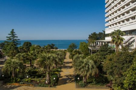 Поездом до ж/д вокзала г. Сочи, далее автобусом № 87, 95, 94, 41, 22 до остановки «Театральная», далее пройти 650 м до отеля.