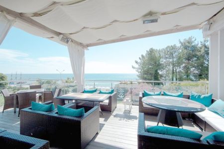 Самолетом до аэропорта Адлер, далее автобусом №105, 105с, 105э до остановки «Театральная», далее пройти в сторону моря 650 м до отеля.