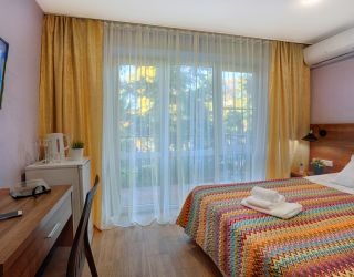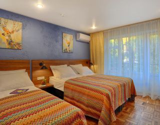 До черноморского пляжа от гостиницы «Хоста» в Сочи – десять минут ходьбы тихим шагом. При этом жить отдыхающий будет в комфортном номере с классическим интерьером и бесплатным Wi-Fi в холле. А так же есть абсолютно новые апартаменты, которые очень отличаются от обычных номеров.
