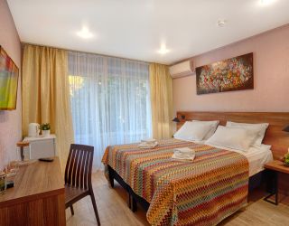 Доступный городской пляж с песком и галькой всего в 600 метрах от гостиницы. Пляж оборудован раздевалками, лежаками, зонтами и навесами. Работает прокат инвентаря для водных развлечений.