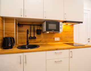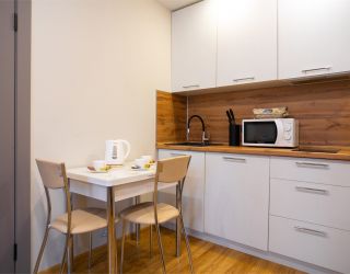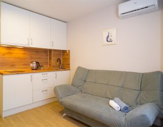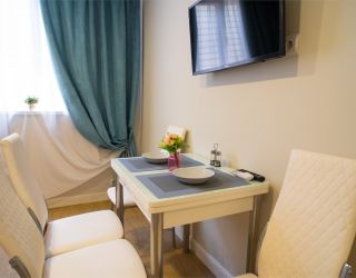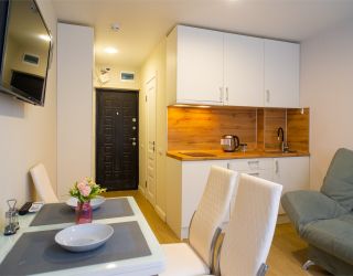 В апартаментах есть все необходимое для комфортного проживания. В каждом высокоскоростной интернет Wi-Fi, телевизор с цифровым ТВ и более 100 каналов, холодильник, стиральная машина, а также постельное белье, полотенца, ванные принадлежности, кофе, чай, микроволновая печь, фен.
