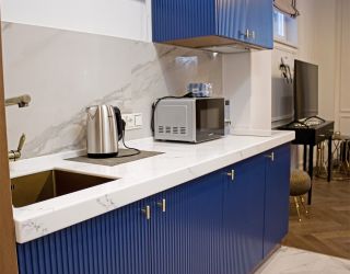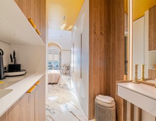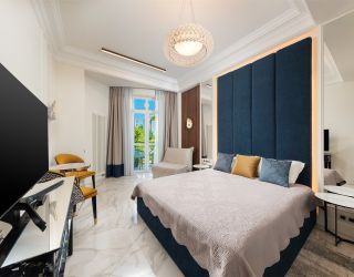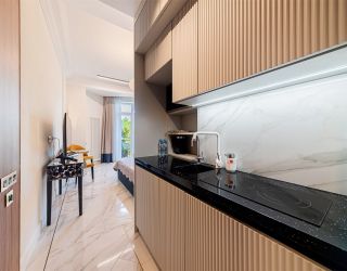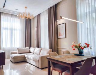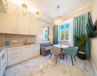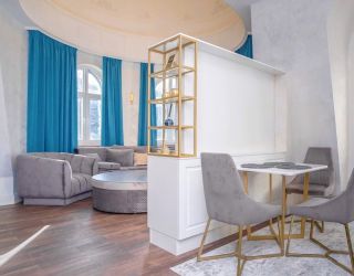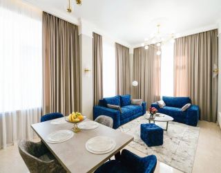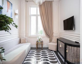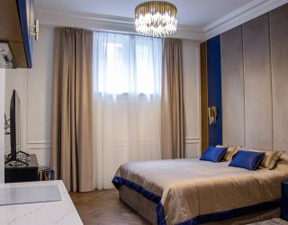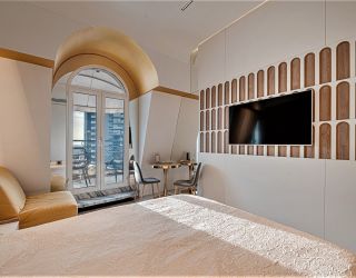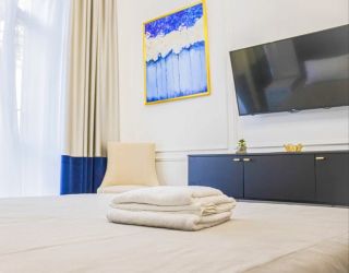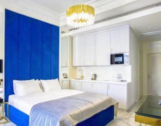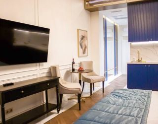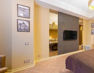Шестиэтажное здании апарт-отеля возвышается на закрытой территории с благоустроенным внутренним двором. В дизайнерских интерьерах апарт-отеля прослеживаются барочные и классицистические мотивы, а в отделке используются только высококачественные материалы, например, полы в холлах выложены из натурального мрамора. Гостей ожидают 15 просторных комфортабельных номеров-апартаментов площадью от 22 до 50 квадратных метров с продуманным индивидуальным дизайном и авторской мебелью. Каждый номер оснащен мини-кухней с варочной панелью, системой кондиционирования, необходимой бытовой техникой, в ванных комнатах подготовлены наборы косметики класс люкс, установлена стиральная машина.