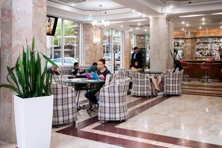 Самолетом до аэропорта Адлер, далее на автобусе №105, 105с до остановки «Гостиница Сочи». Пройти 350 м до отеля.