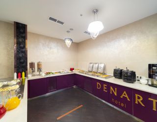 Гости размещаются в одном 12-этажном здании с лифтом. Номера гостиницы «Denart» – с кондиционером, мини-холодильником, мини-баром, сейфом, телевизором и спутниковым ТВ. Есть варианты с общей и раздельными спальнями, двуспальной и односпальными кроватями с ортопедическими матрасами. Можно остановиться в семейном номере или в номере для не курящих.
