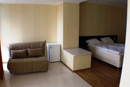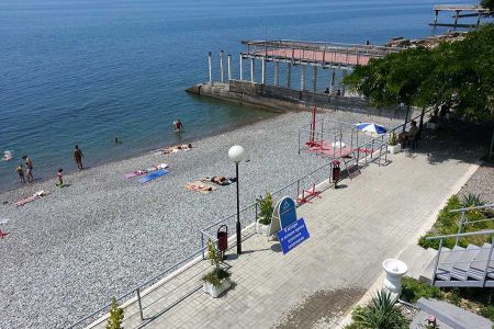 Поездом до ж/д вокзала г. Сочи, далее на рейсовом автобусе №550 до остановки «Санаторий Приморье», далее пройти пешком 420 м до отеля.