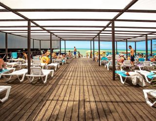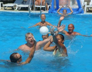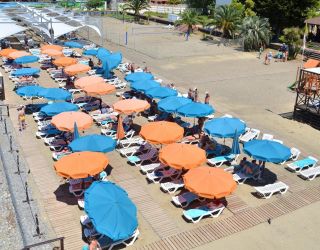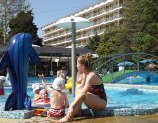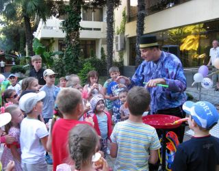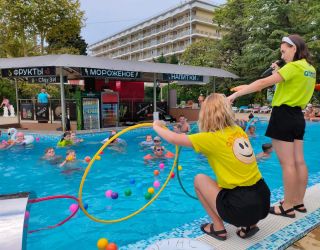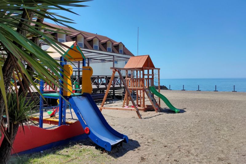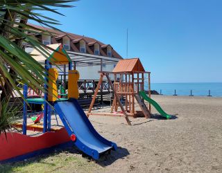 Те, кто прибыл в Сочи с деловыми целями, могут использовать «Бургас» и как рабочую площадку - можно арендовать один из трех отлично оснащенных конференц-залов, подходящих для проведения мероприятий разного масштаба. А для маленьких гостей обустроена специальная зона в бассейне, работает детский клуб с воспитателями, есть детская площадка и пункт проката велосипедов, машинок, роликов и т.д. Расстояние от основных корпусов пансионата до пляжа - около 150 метров. Пляж у отеля песчано-галечный, ухоженный, оборудованный всем необходимым для комфортного отдыха.