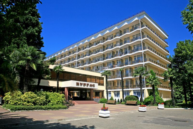 Бургас - современный трехзвездочный комплекс, расположенный в Кудепсте - на границе Адлерского и Хостинского районов Большого Сочи. Пансионат находится на первой береговой линии, в 150 метрах от пляжа, а его территория представляет собой роскошный дендропарк с редкой субтропической флорой. В непосредственной близости от «Бургаса» находится курортный городок с аквапарком, океанариумом и дельфинариумом, ночными клубами, танцзалами, барами и ресторанами, что дает массу возможностей для отдыха и развлечений. В состав комплекса входят два основных корпуса, а также малоэтажные пляжные корпуса. Здания пансионата прошли реконструкцию и были переоборудованы - и теперь их можно назвать полностью соответствующими всем современным требованиям к комфорту. Номерной фонд включает номера семи категорий - светлые, элегантные, хорошо обставленные, оснащенные сплит-системами, с видом на Черное море, величественные горы или зеленый дендропарк. Номера укомплектованы сейфами, холодильниками, TV, установлены телефоны, есть фены. Они рассчитаны на одно- или двухместное размещение, предусмотрены и доп. места. Обслуживание номеров производится круглосуточно. В летний сезон в пансионате организуется трехразовое питание по системе «Все включено». Также в пансионате работает кафе и два бара. На территории пансионата есть все необходимое для разнообразного, полноценного и запоминающегося отдыха, расслабления и лечения. Работает спортивно-оздоровительный комплекс, есть современный открытый бассейн с подогревом, сауна, массажные кабинеты. Многопрофильный лечебно-диагностический медцентр отеля, принимающий на лечение как взрослых, так и детей, отлично оснащен, на его базе проводится широкий спектр процедур, что позволяет пансионату принимать гостей не только на отдых, но и на санаторно-курортное лечение.