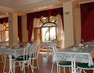 На территории пансионата имеются открытый бассейн с шезлонгами и столовая, в которой предоставляется 3-разовое питание. Среди услуг - интернет WI-FI.
