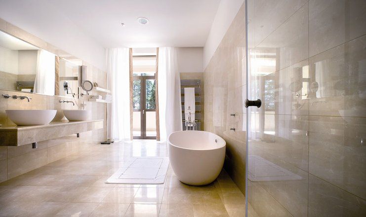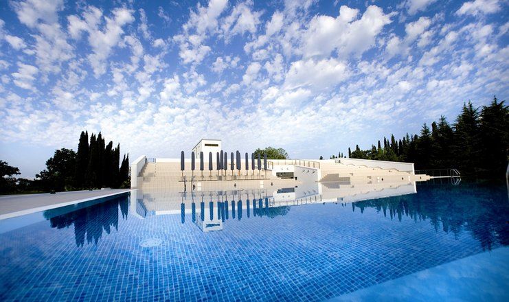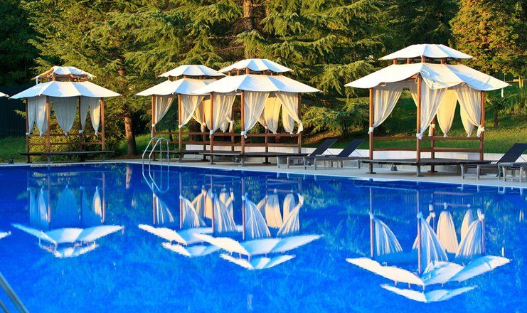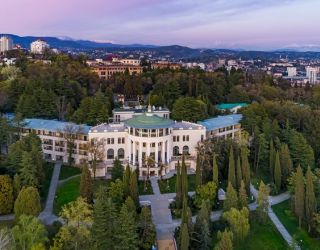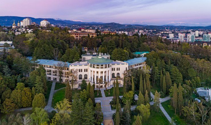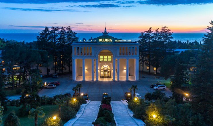 Роскошное здание «Родины» — дворец в стиле сталинского неоклассицизма — было построено в 1946 году для отдыха «первых лиц» СССР и имело статус санатория при Совете Министров. В 2006 году в комплексе была проведена глобальная реконструкция и переоснащение, превратившая его в самый статусный люксовый отель Сочи.
