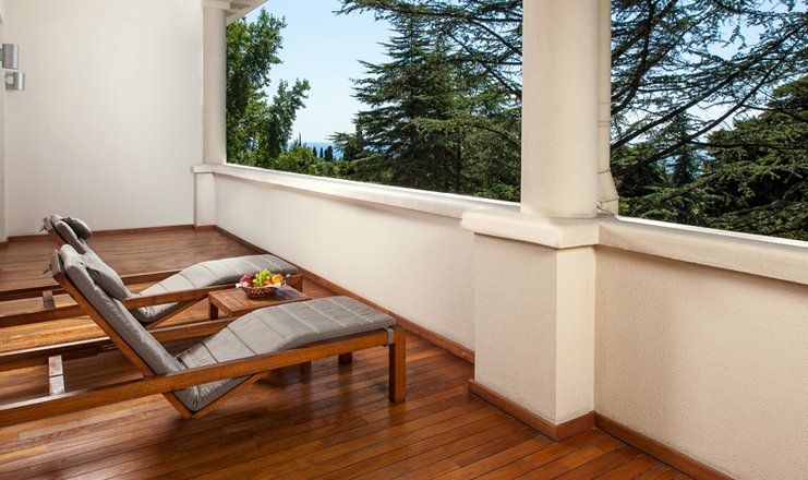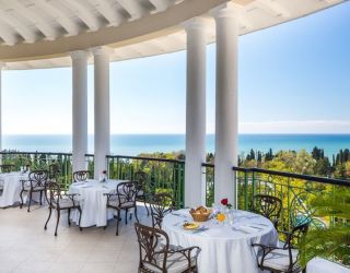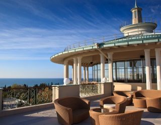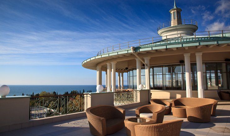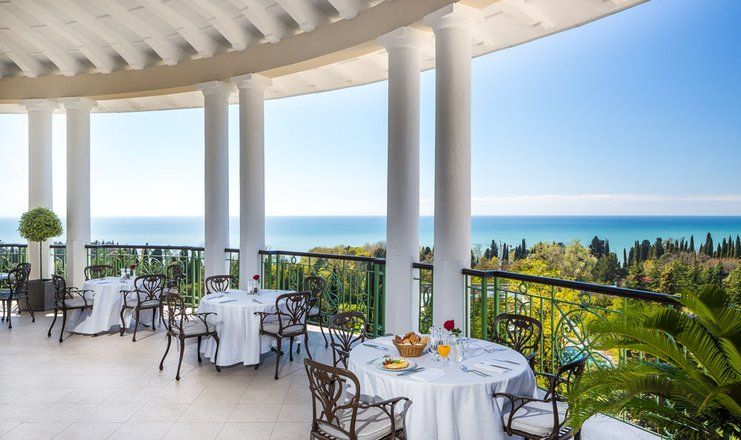 Расположен на самой верхней площадке отеля, где можно пообедать на свежем воздухе или заказать барбекю. Приятным дополнением к меню станут панорама Черного моря, старинного парка и сияние южных небес.