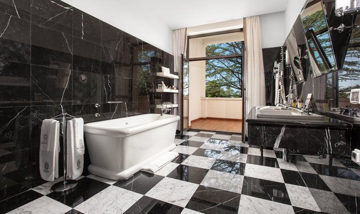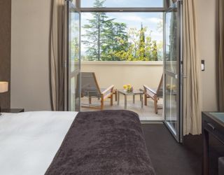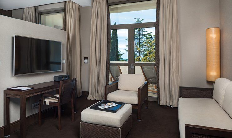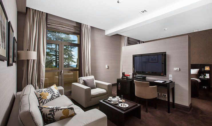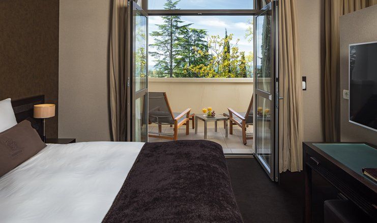 RODINA Grand Hotel & SPA — место, которое можно назвать уникальным. Это единственный пятизвездочный бутик-отель в Сочи, который находится в центре города и имеет огромную собственную территорию — великолепный субтропический парк площадью в 15 га с редкой флорой. Месторасположение отеля, расположенного по соседству с городским парком «Ривьера», можно назвать уникальным: 5 минут пешей прогулки до моря, 15 — до центра Сочи.