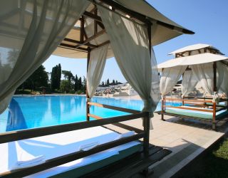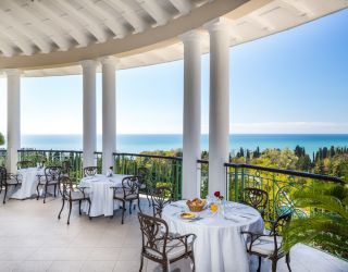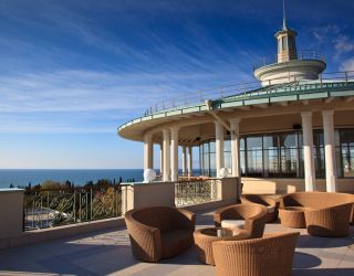 Расположен на самой верхней площадке отеля, где можно пообедать на свежем воздухе или заказать барбекю. Приятным дополнением к меню станут панорама Черного моря, старинного парка и сияние южных небес.