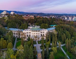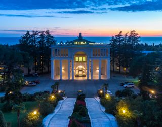 Роскошное здание «Родины» — дворец в стиле сталинского неоклассицизма — было построено в 1946 году для отдыха «первых лиц» СССР и имело статус санатория при Совете Министров. В 2006 году в комплексе была проведена глобальная реконструкция и переоснащение, превратившая его в самый статусный люксовый отель Сочи.