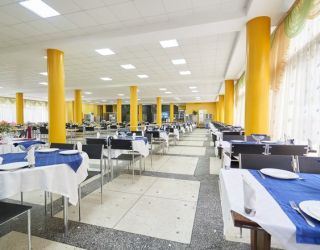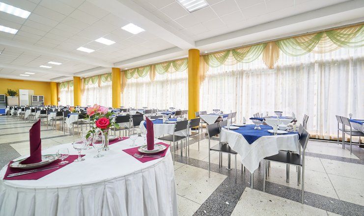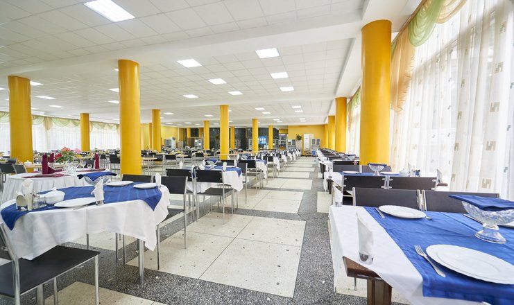 Трёхразовое питание гостей санатория производится в столовой по системе «меню-заказ», с соблюдением назначенных диет. Кроме столовой в лечебнице есть летнее кафе.