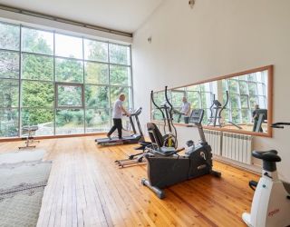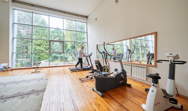 На покрытой экзотическими деревьями и кустарниками охраняемой территории, площадью почти в 49 га расположен комплекс из нескольких многоэтажных жилых корпусов (4 корпус - 5 этажей, есть лифт; 5 корпус - 7 этажей, есть лифт; 8 корпус - 3 этажа, без лифта), трех 2-этажных коттеджей и служебных зданий, способных одновременно приютить более 400 постояльцев.