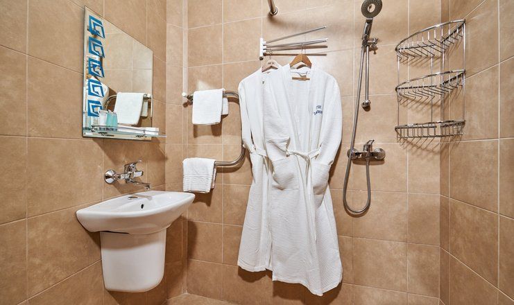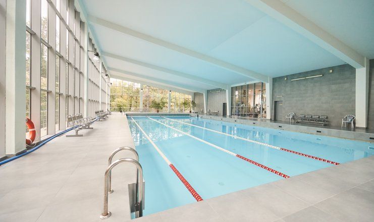 Для юных постояльцев здравницы предусмотрено специальное детское меню, работают игровая комната с воспитателем и детские площадки на свежем воздухе. На пляже, как и в бассейне, отведено место для купания детей.