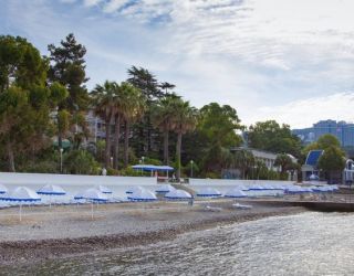 Пользование оборудованным галечным пляжем здравницы входит в стоимость путевки. Помимо лежаков и навесов, у моря есть летний бар и туалет, душевые и медпункт – все для превосходного отдыха и безопасности.